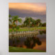 Fotografi av en strålande solnedgång som reflekterar från sjö med Handflatan träd, i tropiska förhållanden. Fotografi i Florida.