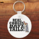 En blå merle Cardigan Welsh Corgi skakar svan när han läser texten: "Real Corgis Has Svan!" Lustigt Corgi-nyckelkedja är perfekt för cardigan-ägaren.