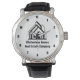 This professional realtor watch is custom made with your real estate company name under the modern cursive script. These trendy minimalist white and black realty business promotional items feature a house logo image that can be replaced with your own for home builder or realty agent company marketing.