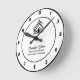 This professional realtor office clock is custom made with your real estate company name under the modern cursive script. This trendy minimalist white and black realty business decor features a house logo image that can be replaced with your own for home builder or realty agent company marketing.