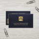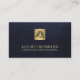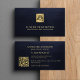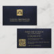 Professional, elegant realtor real estate agent modern minimalist luxury upscale dark navy blue leather look (PRINTED) and gold metallic business card with scannable QR code for contact, evaluation, or to see portfolio.