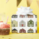 Kreativ Realtor-presentfigursättning med färgfulla rader av konstnärliga nya hus för verkliga gods agent eller kundens hemmauppvärmningspregift.