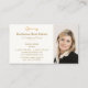 Professionell, vitt fotokort med guld skelett nycklar logotyp. Medieikoner i social på baksidan. Kontakta mig på maurareed.designs@gmail.com om du vill ha ytterligare matchande material från marknadsföring. Om du vill ha mer fördefinierade logotyper går du till logoevolution.co. Ursprunglig design av Maura Reed.