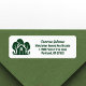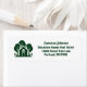 Den här företagsadressetiketten för företag i gods är perfekt anpassad för en verkstad som specialiserat sig på hus nära vildmarken eller skogsmarken. Gröntens silhuett av träd bakom ett logarin hem och personlig med ditt agent och bondeföretag namn för marknadsföring i bakskogen.