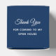 Denna moderna servicebox för anpassningsbar är perfekten för att locka till sig nya hemköpskunder i ett öppet hus. Tack för att du kom till mitt öppna hus eller ett annat anpassningsbar-meddelande till marknadsföring. Dessa minimalistiska blå och vita lådor har en enkel linje teckning i ett hus för en enkel chic fastighetsagentverksamhet.