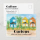 En anpassningsbar riktig postkortsbrevbärare i gods marknadsföring för potentiella hemförsäljare för en kostnadsfri uppskattning av hemmet, som dekoreras med tropiska strandhus som målats med klara vattenfärger med handflatan träd och slät sand. Du kan anpassa framsidan och baksidan är en personlig som du kan anpassa efter dina behov.