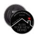 Ett rött hjärta över ett nytt hem i tak har ord "Bless Your New Home!" tillsammans med ditt företag namn, mobilt nummer och agent namn finns på denna flaska-öppnare. ÄNDRA BAKGRUND FÄRG till vad som helst - vi visar svart. Anpassa den här presenten från företaget marknadsföring med egen information för att gratulera köparna till deras nya hem.