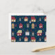 Detta vackra julkort i gods har ett festligt mönster av hus vid midnatt blå himmel. Denna utformning av söt helgdag är dekorerad med gräs träd och vitt snö.