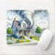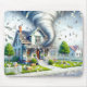 Ett massivt tornado av snärjpengar dominerar ett förorts grannskap, som skapar en surrealistisk och kaotisk scen.