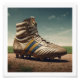 Wall Art & Décor: En vättad, vintage fotbollsmatch med ett slitet läder-avsluta och en subtle Real Madrid-varumärke mot en minimalistisk bakgrund.