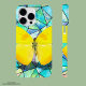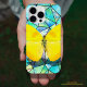 En brant, realistisk nyljus fjäril för gult flyger över det färgstarka geometriska glaset i blå övertoning.
