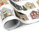 Realjulklapp eller dekoration från party i julklapp i agent, med en rad helgdag, inklusive ett brödbrödhus, dekorerat för jul.