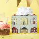 Kreativets riktiga gods agent-presentfigursättning med färgstarka hus för Realtor, fastighetsmäklare eller hemmauppvärmning i party.