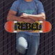 Färgrik Rebelious temaskateboard.