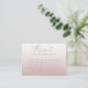 Elegant och chic 'Recept för den blivande bruden' inklusionskort med stilfull roséguldskalligrafi på en mjuk roséguldsgradientbakgrund. Perfekt för bröllopsfester, köks-te-partyn och bröllopsfiranden, denna feminina design lägger till en touch av lyx och charm. Lätt att anpassa, den koordinerar vackert med matchande boho-, moderna eller minimalistiska bröllopsbrevpapper.