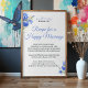 Elegant bröllopspresentaffisch med modern design för ”recept för ett lyckligt äktenskap” i en mjuk blå irisblomstil. Perfekt som något blått bröllopspresent eller bröllopssouvenir, denna väggkonst firar kärlek, partnerskap och ett meningsfullt liv tillsammans.