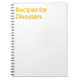 En roligt ärlig spiralanteckningsbok med fet gul text på vit bakgrund: “Recept för katastrofer”. Perfekt för misslyckade måltidsplaner, kaotiska köksanteckningar eller livets finaste röra.