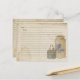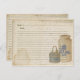 Detta receptkort har en förfallen bakgrund, som om det redan hade använts flitigt. En stentöjskruka och en träskopa ger en touch av lantlig charm åt designen.