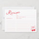 Ett inmatningskort/hölje med roligtens röda och vita möhippa med en illustration på 2 körsbär bundna med en båge. "Recept" i ett ljust, rött handskrivet stil-teckensnitt. Perfekt för ett tema "Hon är körsbärsbäret på toppen" möhippa.