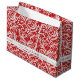 Lägg till lite elegans i din julhelg med den här fantastiska abstrakten jul mönster. Den här designen fångar magin från ett vinter under vintern och har delikata virvlar och snöflingor i pristinvit mot en ljusröd bakgrund. Kombinationen fet färger och krångligt mönster gör det till ett val av perfekt att lägga till ett popup-fönster med färg i helgdag. En mall har tillhandahållits på presentsäcksdesignen för att lägga till ditt namn och/eller din favoritJulhälsningar. Sök i ID1009 för att se andra produkter och mönster i det här färg-schemat.