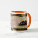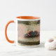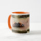 Detta fantastiska mugg har ett foto av en vacker rödamiral Butterfly (Vanessa atalanta). Denna art är främst svart med vita prickar och vackra röda band på vingar. Fotot visar fjärilen, med vingarna öppen, som vilar på en tegelvägg som tittar på kameran. Fotografiet togs med makrofotografi för ett detaljerat resultat.