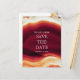 Röd agate geode hösten bröllop spara datum vykort. Den här moderna Spara datumdesignen har en röd skiva i höst färger: orange, korall, persika och brun.