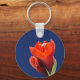Nyckelkedja/nyckelring med foto av röd amaryllisblomma med mörk blått bakgrund
