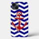 Denna vibrerande nautiska design har ett rött ankare på en marin blå och vit schevron rand mönster.