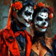 Red and black Caricature Dia de los Muertos-par Inbjudningar