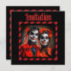 Röd och svart karikatyr Dia de los Muertos Couple i rött skick. Lägg till en liten bit makaber till nästa evenemang med den här häpnadsväckande vackra inbjudan. Den här inbjudan är perfekt för Halloween fest, gotiska sammankomster eller tillfälle där du vill lägga till en liten bit av skåpet.