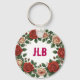 Place your initials or monogram inside a red and pale pink rose wreath. Stylish, elegant, and classic.