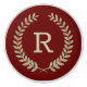 En elegant monogrammade en enkel bild av utandningen av faux guld och vit glitter över en mörkröd bakgrund.