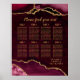 Red and Gold Agate Wedding Seating Chart Poster