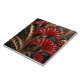 Beautiful red, black and gold shiny ceramic tile with red flowers and gold ferns.