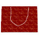 This elegant and glamorous holiday gift bag features Merry Christmas gold script word art on a red background. This is perfect for giving gifts and party favors.