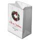 Celebrate the season of giving with this elegant Christmas wreath gift bag, featuring a classic watercolor design of pine branches, holly berries, and pine cones, accented with a red and green plaid pattern. The timeless red, green, and gold color palette adds a warm, festive touch that pairs beautifully with any holiday gift. Designed in a minimalist rustic style, this bag blends tradition and elegance perfectly. Personalize it easily with your family name or special message to make your presents extra meaningful. Perfect for gifting during Christmas gatherings, parties, and celebrations — a lovely way to wrap your holiday cheer with style and charm.