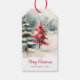 An outstanding red pine trees, somewhat whimsically, stands out among the also lovely snow-covered green trees in the woodland forest. It is from a vintage rural watercolor scene. "Merry Christmas" in editable red script highlights the front of these beautiful holiday gift tags. Be sure to change the example family name and the year. The reverse side includes "to" and "from" fields for you to fill out or leave blank.