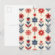 Red and Navy Folk Floral Pattern Vykort