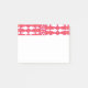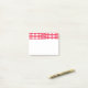 Anteckningsblocket Post-it har en konsthandling av diamanter och trianglar som ser ut som skålar i rött och rosa.