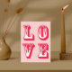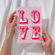 Fira kärlek med detta sjudande kort på Alla hjärtans dag med ord "kärlek" som fräckt är skrivet på lekfullt rött och vitt brev. Den slående kombinationen rött och rosa hues fångar romantik innersta väsen, skapar det perfekten att uttrycka hjärtliga känslor. Det här kortet är perfekt för att dela med en partner, vän eller familjemedlem. Det är säkert att det kan ge glädje och värme vid alla särskilda tillfällen.