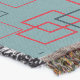 Om du håller ihop rutor i rött och svart skapas ett geometriskt mönster mot en muterad tealbakgrund. Mindre spridda rektanglar och varierade linjesegment ökar designens visuella intresse.