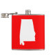 Den vita formen av karta i staten Alabama mot ljust rött.