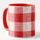 Red and White Modern Geometric Large Check Gingham Plaid with Twill and Threads Texture Effect Seamless Repeat Pattern Design