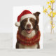 Red and white Border Collie Christmas card Kort