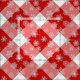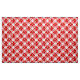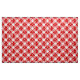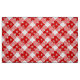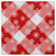 Fabric i ett stort, djupt rött och vitt buffel plaid mönster, med ett flytvitt snöflingor
