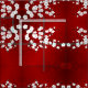 Söt, vit och svart körsbär blommar gren på en krympande röd bakgrund.