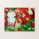 Red and White Dairy Cow in a Strawberry Patch Pussel