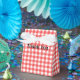 Röd och vit gingham mönster med tack. Text kan ändras.
