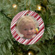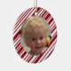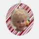Denna söta och färgstarka prydnadsämne är perfekt för helgdagarna. Ett runt foto på framsidan med namn och år på baksidan gör detta till en perfekt för morföräldrar. Skaffa en fotodekoration varje år för att kryssa för ditt barns eller barnbarns tillväxt. Utformningen har ett rött och vitt candy cane-rand som ger träd ett streck. Typografi på baksidan av ornament är lätt att läsa och är färgad blå