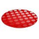 Vit polka punkt mönster mot ljust rött. Polka dots i entoningsgradient.